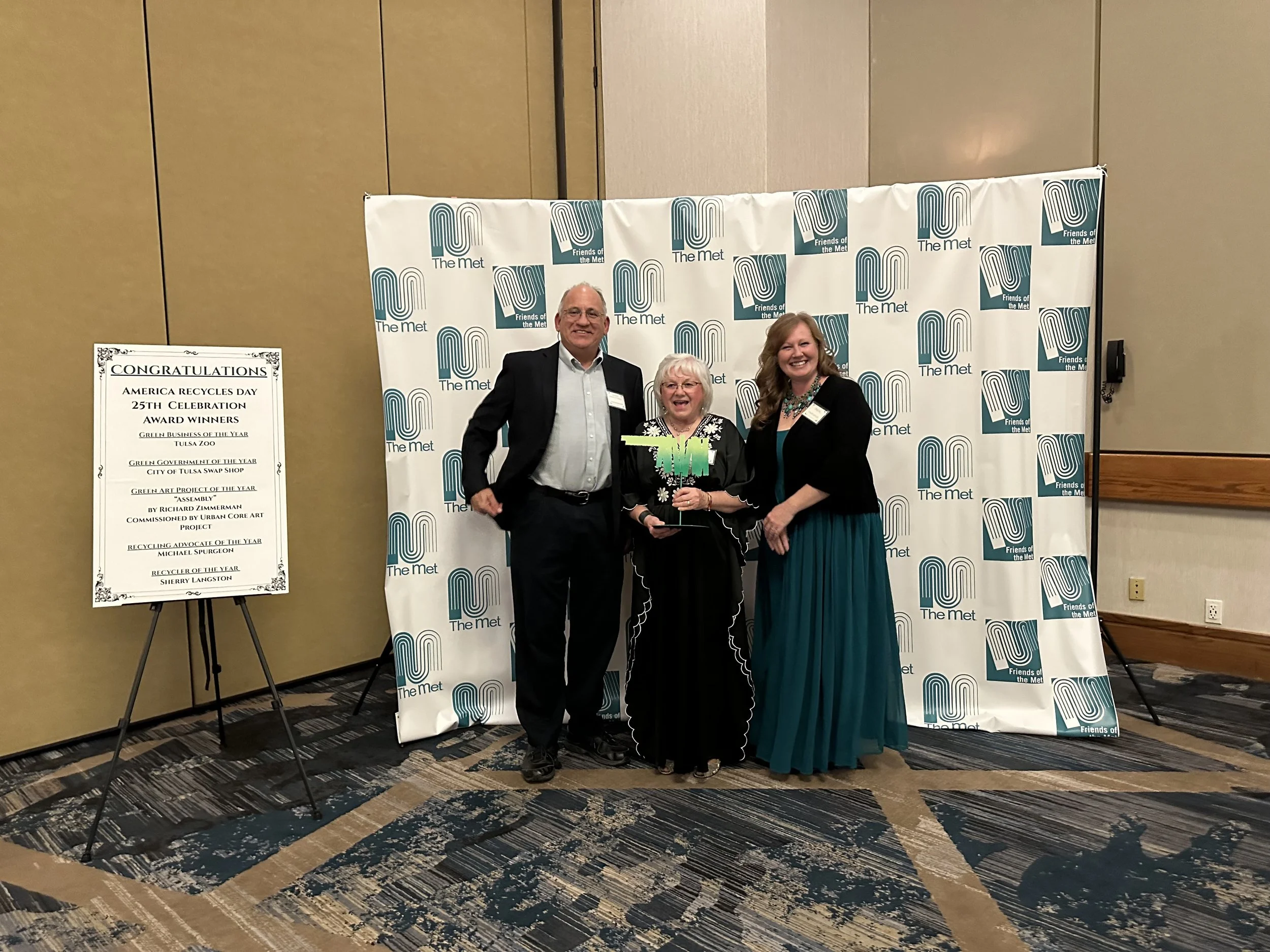 We had five Award Winners. Green Business of the Year went to the Tulsa Zoo. Green Government of the Year went to the City of Tulsa Household Pollutant Collection Facility’s Swap Shop. Green Art Project of the Year went to Richard Zimmerman for his sculpture, “Assembly,” commissioned by Urban Core Art Project. Recycling Advocate of the Year went to Michael Spurgeon, and Recycler of the Year went to Sherry Langston.